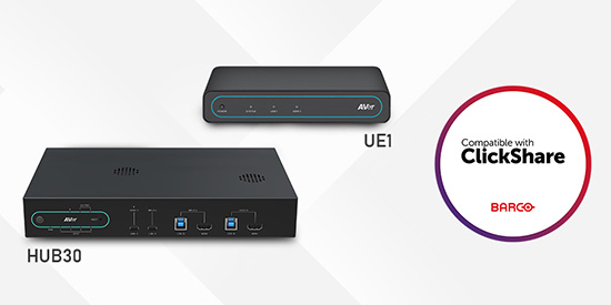 全球AI影音解決方案領導品牌圓展科技(TWSE: 3669)宣布,旗下UE1 USB延伸器與HUB30 4K USB / HDMI切換器正式加入 Barco ClickShare 相容周邊設備(Compatible peripherals),為使用者提供簡單且可靠的 BYOM 會議室解決方案。這兩款產品列於 Barco 的「USB-Hub/Switch/Extender」類別中,旨在為 Barco ClickShare 無線生態系提供穩定的硬體基礎。當使用者透過筆電啟動會議時,攝影機與周邊設備皆能即時識別並連線。